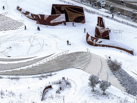 1月21日,雪后的庙底沟考古遗址公园,银装素裹,市民纷纷来到这里赏雪、参观,感受冬日美景。 杜杰 摄