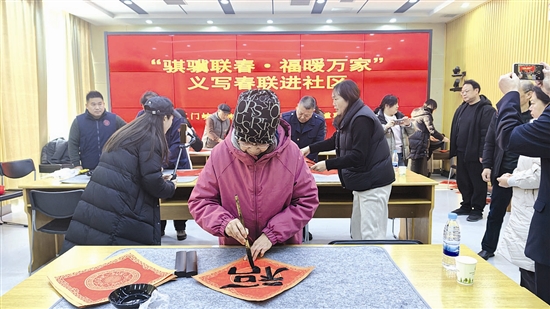 1月28日,“骐骥联春·福暖万家”楹联迎春活动走进三门峡市林业局,市楹联学会书法家现场挥毫写春联、送福字,墨香阵阵年味儿浓。 据悉,全市义写春联进社区活动同步开展,把手写的马年美好祝福送到千家万户。 尚栋 摄 ( 编辑:tln ) |