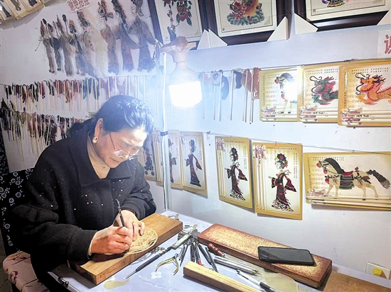 杨月亲正在雕刻皮影 春日暖阳透过枝叶,静静洒进陕州地坑院10号院的一孔窑洞内。一张木桌旁,63的杨月亲正手持刻刀,全神贯注地雕刻皮影,灯影之下,花团锦簇的图案渐次跃然于牛皮之上。一旁,她的搭档、57岁的梁孝斌正站在满墙的皮影作品前,为几名游客细细讲解。作为三门峡市级非物质文化遗产代表性传承人,他们以指尖为笔,以光影为墨,在“地平线下古村落”里守护着非遗火种,让古老艺术在新时代焕发生机。 “爷爷以前是木偶戏剧团的,我从小便跟着爷爷学木偶戏、练唱腔。那时木偶戏、皮影戏都是一起学的,所以耳濡目染下,我也走上了这条道路。”谈起与这门古老艺术的结缘,杨月亲娓娓道来。 中国木偶戏历史悠久,源于汉,兴于唐。杖头木偶,古代称“杖头傀儡”,是演员在幕后操纵木制玩偶进行表演的戏剧形式,表演者用双手握住操纵杆进行表演,以歌舞、戏剧来演绎故事。杨月亲是市级非物质文化遗产木偶戏的代表性传承人,她所表演的木偶戏与灵宝道情深度融合,形成了独具一格的艺术风貌。 “木偶表演,难在‘人偶合一’。操作时要举功稳、步法准、手腕活,想要演好非一朝一夕之功,得靠长年累月练习。”杨月亲认真地说。2017年起,杨月亲来到陕州地坑院进行演出,无论是经典剧目《武松打虎》《猪八戒背媳妇》,还是新编的现代题材,都吸引大批游客驻足喝彩。除了擅长木偶戏,皮影也是杨月亲的拿手绝活。“你看这些皮影,都是我们最近做的。”杨月亲表示。 顺着杨月亲所指,记者看到一个“皮影大世界”,墙面上挂满装裱精致的皮影作品,浓郁的民俗韵味扑面而来。“西施浣纱”“昭君操琴”“貂蝉拜月”“贵妃沐浴”四大美女主题系列造型典雅,人物头饰、衣袂褶皱、配饰等均用鲜艳色彩精细勾勒,尽显皮影刻画的高超技艺;“马到成功”勾画了数匹奔腾的骏马,洋溢着马年新春的喜庆气息;“福”字皮影将汉字拆解为多种传统吉祥纹样,线条流畅,寓意吉祥……这些作品既保留了皮影的传统工艺精髓,又融入寓意吉祥的题材选择,一件件皮影,便是承载千年文化的艺术载体。 皮影戏最早诞生于西汉,有牛皮戏、驴皮戏、影子戏等多种叫法,成熟于唐宋,发展于元明,盛极于清代、民国及新中国成立初期。道情皮影戏是古老的民间剧种与皮影表演相结合,从而形成独具风格的综合性艺术。 梁孝斌从小跟随母亲刘秋楞学习皮影戏,是三门峡市级非物质文化遗产道情皮影戏代表性传承人。2017年,他也来到陕州地坑院,和杨月亲组成搭档,共同为海内外游客展示这门古老艺术的风采。 皮影制作是皮影戏的根基,每一件作品都凝聚着匠心。梁孝斌介绍,制作皮影要经过打磨、雕刻、上色、装订等多道工序,有时耗时数天才能完成一件作品。杨月亲补充道:“像花草之类的一天基本能完成一至两件,人物就复杂了,三四天才能做好一件。皮影是‘立体的画,流动的戏’,每一刀都要精准,差之毫厘便失之千里。” 皮影表演同样讲究,演出时,演员手持两至三根竹签,精准操控皮影的动作,配合道情唱腔讲述故事。打斗场面时皮影动作迅猛激烈,情感戏则细腻舒缓,让观众沉浸其中。 近年来,地坑院非遗展演年均接待游客超百万人次,杨月亲与梁孝斌的表演,成为游客感受三门峡文化魅力的重要窗口。在坚守传统的同时,两位传承人亦积极探索创新传承之路:围绕三门峡“天鹅之城”IP,精心创作白天鹅主题的皮影摆件,结合热门动画形象“哪吒”,创作了俏皮的哪吒皮影摆件;走进中小学校开设非遗课堂,手把手教孩子们制作皮影、表演皮影,他们还计划与新媒体结合,拍摄短视频、开展直播展演,让古老艺术走进更多年轻人的视野。 让非遗以更贴近生活的方式传播。他们的创新,让古老非遗在新时代拥有了更强的生命力。“非遗不应该只有我们这代人会,要让年轻人真心喜欢,才能真正活下去。”杨月亲郑重地说。 当灯光在陕州地坑院的窑洞内熄灭,杨月亲与梁孝斌收拾好道具,踏上归途。他们的坚守,是对传统文化的深情致敬;他们的创新,是对非遗传承的时代作答。在这片“地平线下古村落”里,杨月亲与梁孝斌用指尖技艺传递文化温度,让木偶与皮影的故事在黄土深处生生不息,共同书写着三门峡非遗传承的新篇章。 ( 编辑:tln ) |