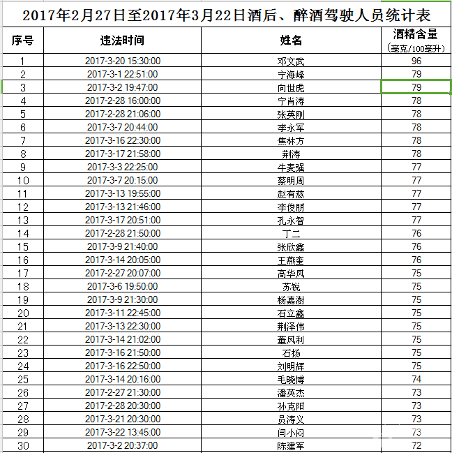 快讯:我市最新曝光272名酒后、醉酒驾驶人员(2月27日—3月22日)