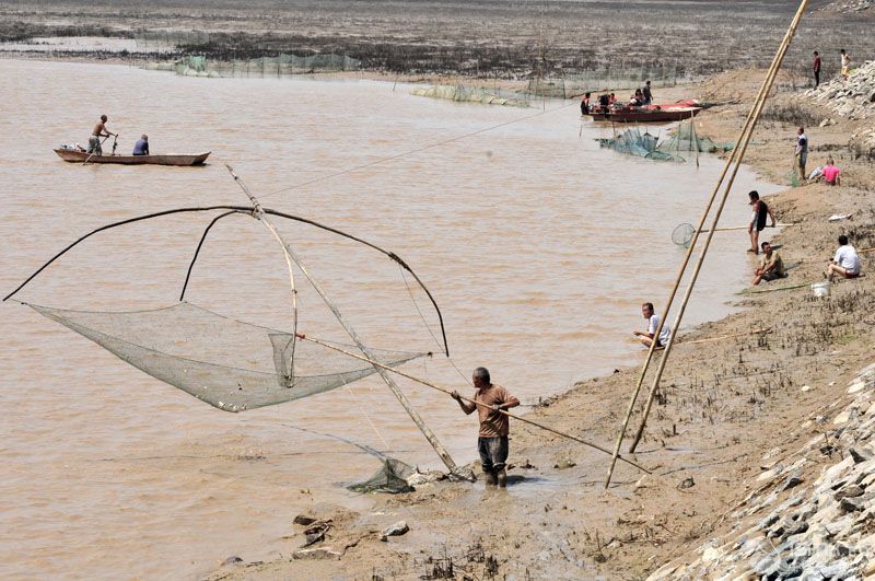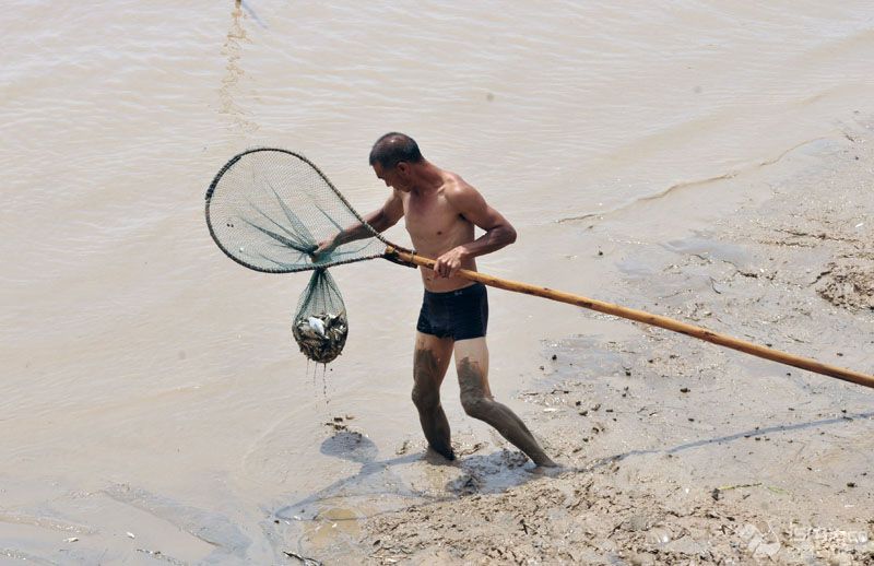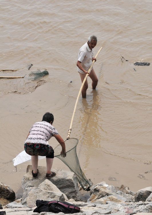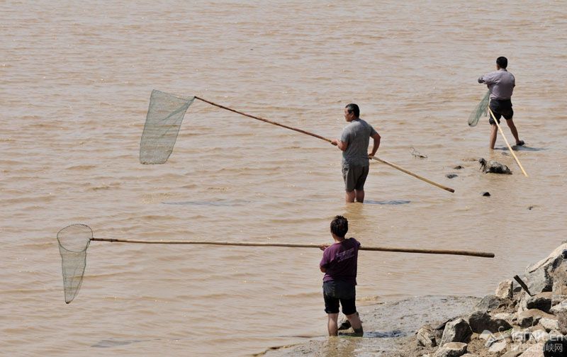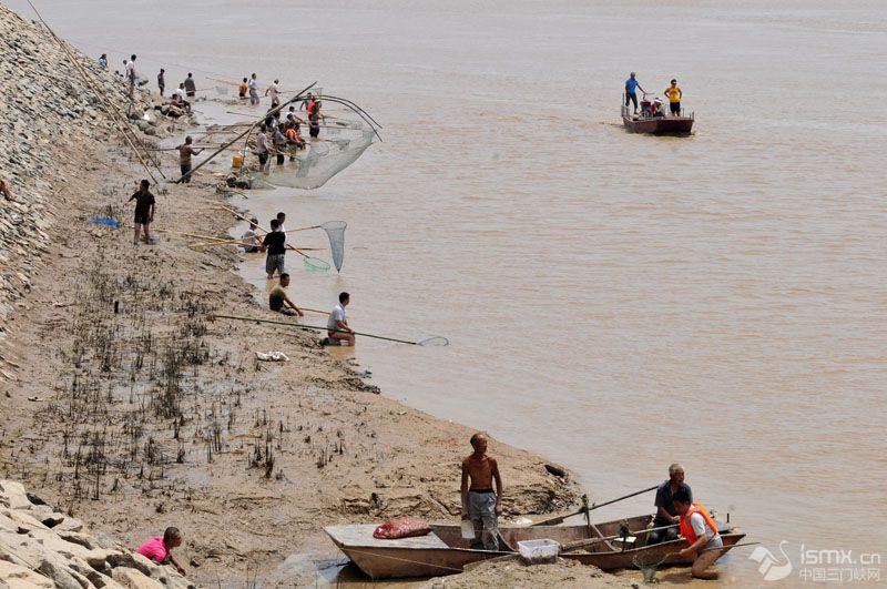 三门峡水库放水 黄河现流鱼奇观两岸民众冒险下黄河捞鱼
