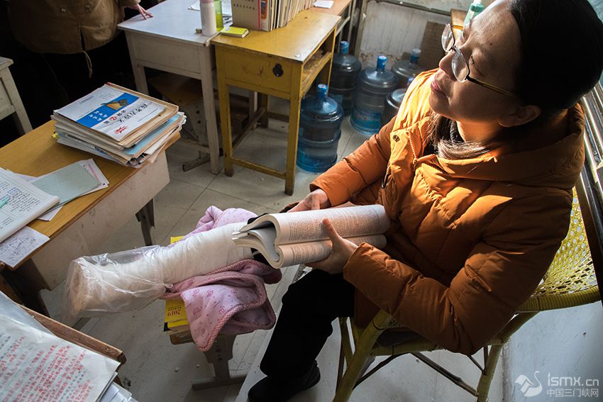目击豫西一高中女老师拖着打石膏的腿给学生上课,让人感动掉泪