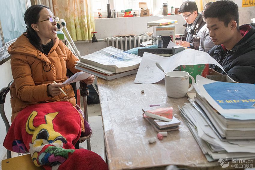 ![]() 她打着石膏的腿虽不能动弹,但面带笑容讲课很认真。
