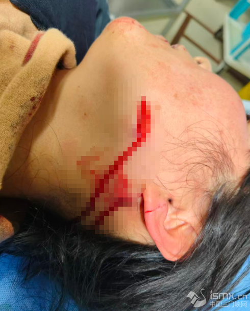 生死瞬间 王妙丽瞅准时机飞起一脚 精准踢落对方手中的凶器 搏斗中 她的左侧脸颊、耳部、嘴唇等处 被利刃划伤 鲜血瞬间染红了脸颊 伤口最深达1公分 最长近5厘米