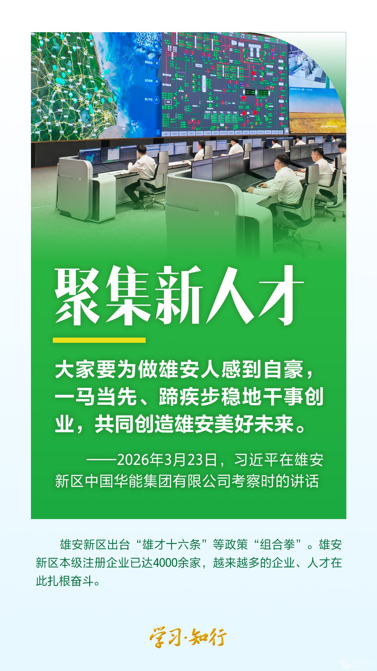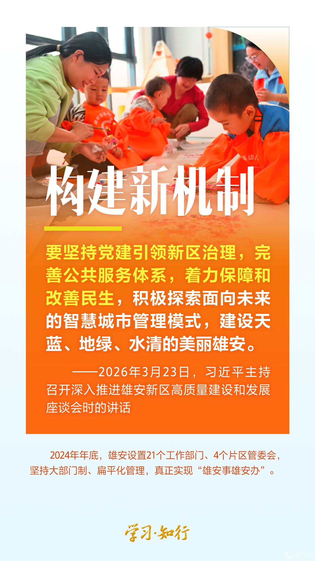 2026年3月23日,习近平总书记在河北雄安新区考察,主持召开深入推进雄安新区高质量建设和发展座谈会,强调牢牢把握雄安新区功能定位,努力建设新时代创新高地和推动高质量发展样板。 千年大计,只争朝夕。如今的雄安新区,正以看得见的“新”,锚定目标,阔步前行。