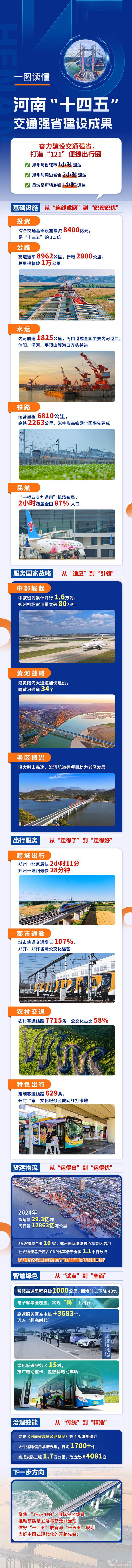 人民网郑州10月14日电 (程明辉)跨城出行“拎包走”、都市通勤“像串门”、个性出行“特色足”……10月13日,河南省举行“十四五”系列主题新闻发布会,会上披露,“十四五”以来,河南交通强省建设迈出坚实步伐,一个更高效、更智能、更暖心的中原综合立体交通网正逐步成型。 “郑州与省辖市1小时通达、郑州与周边省会城市2小时通达、县城至所辖乡镇1小时通达,全省‘121’便捷出行格局基本形成。”河南省交通运输厅党组书记、厅长付磊介绍,“十四五”期间,河南综合交通基础设施投资将达8400亿元,是“十三五”的1.5倍,全省综合交通网总规模达29.2万公里。 公路方面,高速公路通车里程已达8962公里,“十四五”新增里程超2900公里,年底将突破1万公里,90%以上的县迈入“双高速”时代。普通干线公路新改建4500公里,实现重要节点二级及以上公路连通。农村公路也成绩斐然,新改建4万公里,“四好农村路”全国示范县达23个。 水运方面,河南内河航道里程达1825公里,周口港成为全国内河主要港口之一,2024年全省完成港口吞吐量6085万吨、集装箱10.9万标箱,比“十三五”末分别增长1倍、12倍。 铁路民航同样蓬勃发展,铁路运营里程达6810公里,其中高速铁路2263公里,率先建成“米”字形高铁网。全省形成“一枢四支九通用”机场布局,航空运输2小时内覆盖全国87%以上人口。 在服务重大战略方面,河南积极作为。“郑州-卢森堡”“郑州-吉隆坡”双枢纽发力,中欧班列(郑州)累计开行16000列,郑州航空港区建成内陆首个国际公路运输集结中心。同时,沿黄陆海大通道加快建设,跨黄河运输通道达34个,沿大别山高速等项目建成通车,为老区发展注入新动能。 便捷群众出行也是河南交通发展的重点。跨城出行“拎包走”,郑州到北京最快2小时11分,到洛阳高铁28分钟直达。都市通勤“像串门”,城市轨道交通运营里程增加220公里,郑开、郑许城际公交化运营,通勤成本降低近一半。农村交通“有保障”,开通农村客运线路7715条,公交化运营占比58%。此外,全省新增定制客运线路629条,“交通+医疗”等特色服务不断创新。 在货物运输方面,河南正由“内陆腹地”向“物流枢纽”加速转变。2024年全省累计完成货运量29.3亿吨、货运周转量12863亿吨公里,比“十三五”末分别增长34%、48%。邮政快递也进阶提质,2024年完成邮政行业业务收入727.3亿元、快递业务量90.5亿件,比“十三五”末分别增长79%、192%。 智慧绿色发展同样亮点纷呈。智慧高速里程突破1000公里,智慧扩容试点路段改造后拥堵总时长有望下降40%。绿色交通方面,城市公交基本实现新能源化,全省高速公路服务区新增充电桩3683个,迈入“超充时代”。 一图读懂河南“十四五”交通强省建设成果 (图片来源于河南省交通运输厅) ( 编辑:tln ) |