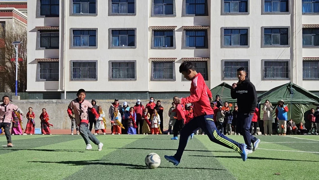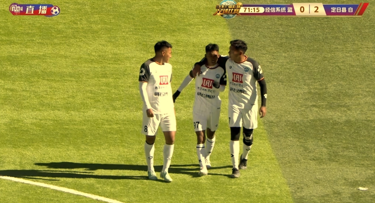 受灾乡镇的大学生、97号罗布塔杰返乡参赛,在本届比赛中为定日县代表队贡献4粒进球 日喀则海拔近4000米的绿茵场上,冠亚军决赛持续两个多小时,一直踢到点球大战才决出胜负。 而在场外,定日灾后重建的新居、周末午后的茶馆,还有志愿者们到市区赶考的大巴车里,都有人看着手机屏幕,被赛场上昂扬的气氛联结在一起。 球赛解说:喜马拉雅为证,他们用高原独有的韧劲拼到了最后一刻。拼搏的精神属于每一位追光者!