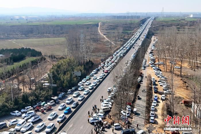 2月17日,农历正月初一,被誉为“微短剧之村”河南登封袁桥古村吸引众多游客前来打卡体验。据了解,自2024年以来,已有超过50部微短剧在此取景拍摄。图为驾车前往袁桥古村打卡的游客。(无人机照片) 刘杨迪 摄