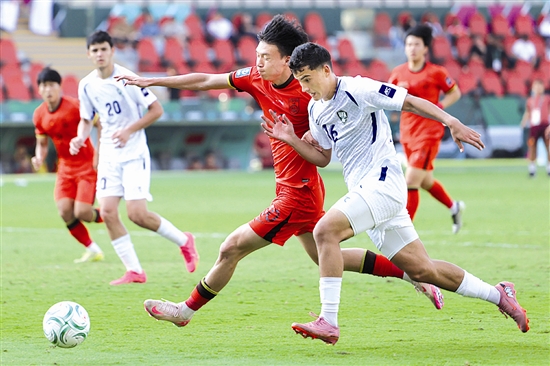 当地时间1月17日,在沙特阿拉伯吉达举行的2026年亚足联U23男足亚洲杯四分之一决赛中,中国队与乌兹别克斯坦队在常规时间和加时赛0比0战平。最终通过点球大战,中国队4比2战胜乌兹别克斯坦队,晋级四强。 新华社记者 王海洲 摄