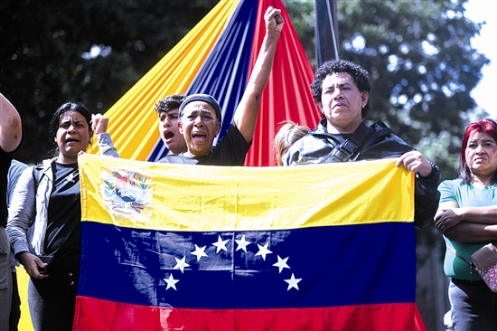 直击委内瑞拉首都加拉加斯现况 1月3日,在委内瑞拉首都加拉加斯,民众在米拉弗洛雷斯宫附近集会。新华社发